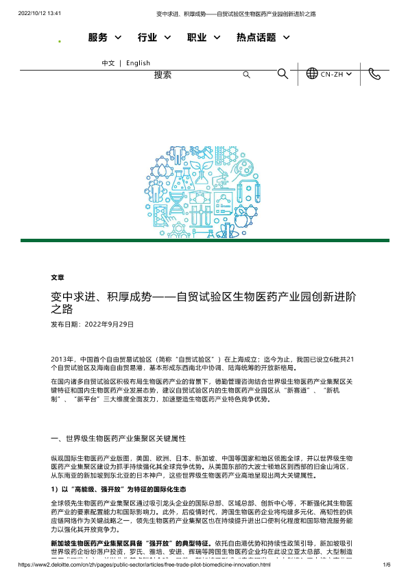 【德勤】【20220929】变中求进、积厚成势-——自贸试验区生物医药产业园创新进阶之路-6页