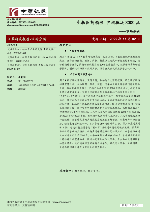 【中原证券】【20221102】市场分析:生物医药领涨,沪指挑战3000点-8页
