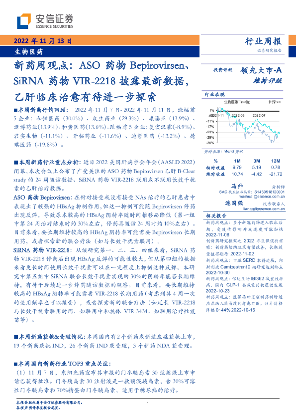 【安信证券】【2022】21113-安信证券-生物医药行业新药周观点:ASO药物Bepirovirsen、SiRNA药物VIR_2218披露最新数据,乙肝临床治愈有待进一步探索-15页
