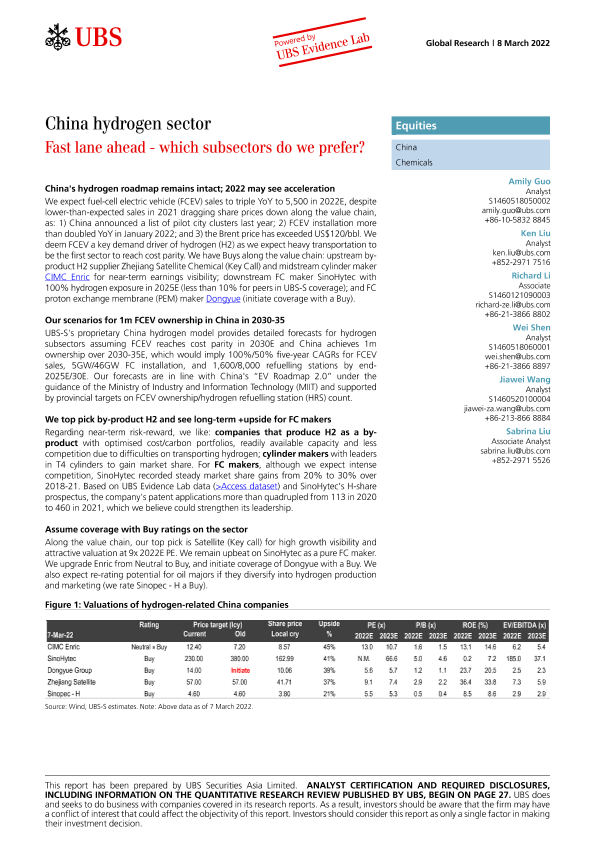 【瑞银证券亚洲有限公司】【20220308】瑞银-中国化学制品行业-氢行业:前方的快车道之我们更喜欢哪个界别?-37页