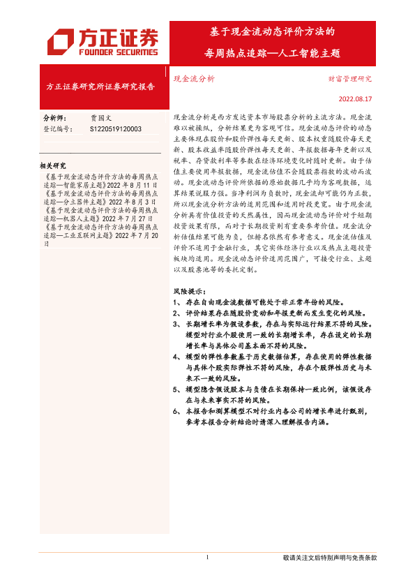 【方正证券】【20220817】基于现金流动态评价方法的每周热点追踪:人工智能主题-8页