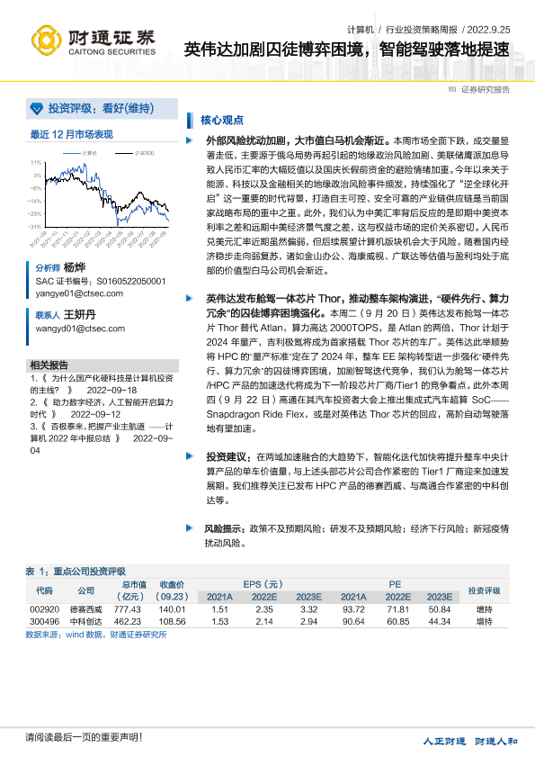 【财通证券】【20220925】计算机行业:英伟达加剧囚徒博弈困境,智能驾驶落地提速-12页