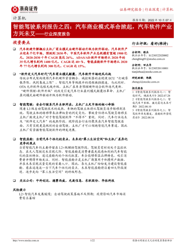 【浙商证券】【20221007】20221007-浙商证券-计算机行业深度报告:智能驾驶系列报告之四,商业模式革命掀起,汽车软件产业方兴未艾-22页