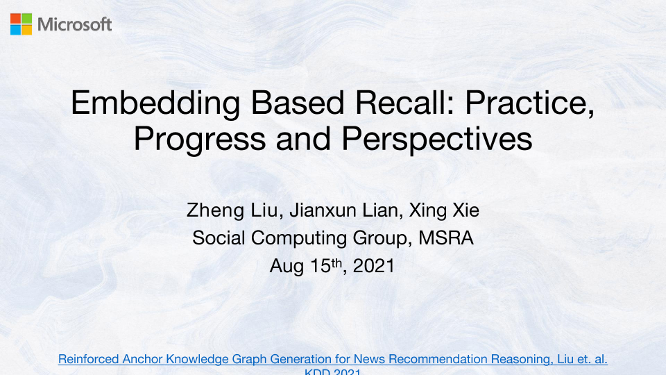 【Social Computing Group】【2021】Embedding Based Recall Practice, Progress and Perspectives-30页