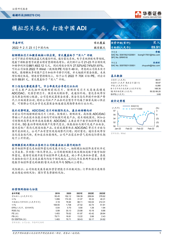 【华泰证券】【20220223】臻镭科技-688270-首次覆盖:模拟芯片龙头,打造中国ADI-30页