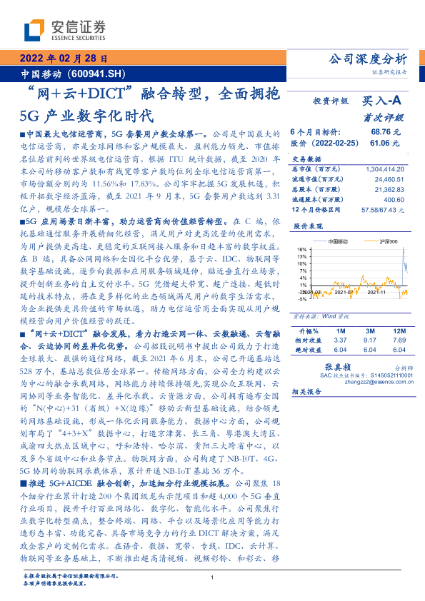 【安信证券】【202202】中国移动_+“网+云+DICT”融合转型,全面拥抱5G产业数字化时代-34页
