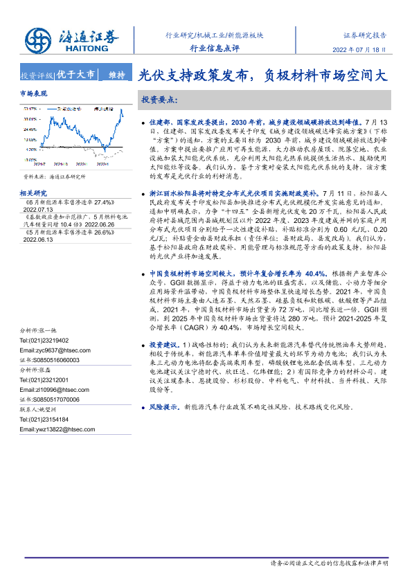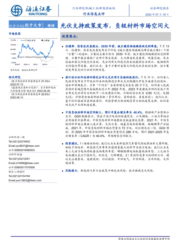 【海通证券】【20220718】机械工业行业:光伏支持政策发布,负极材料市场空间大-2页