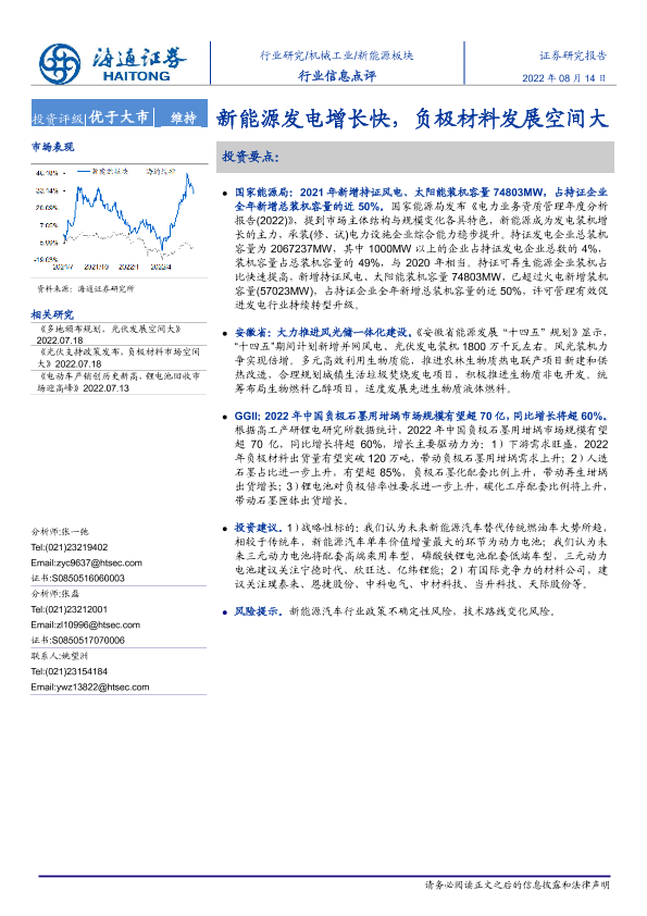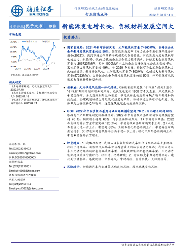 【海通证券】【20220814】机械工业行业:新能源发电增长快,负极材料发展空间大-2页