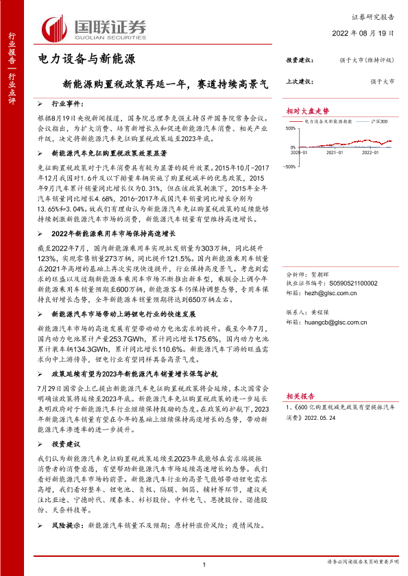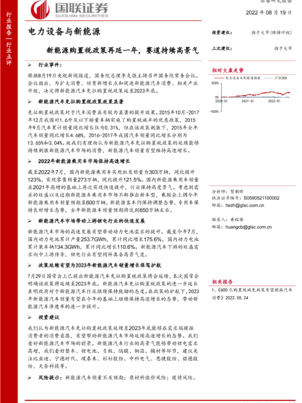 【国联证券】【20220819】电力设备与新能源行业:新能源购置税政策再延一年,赛道持续高景气-3页