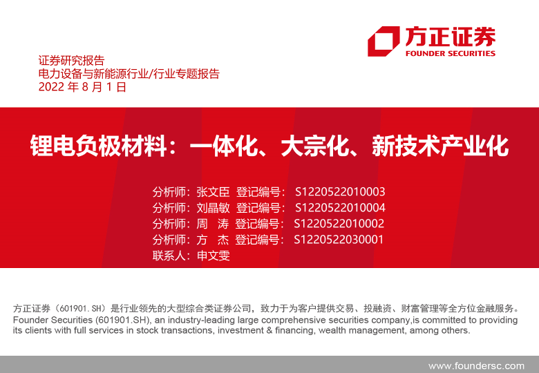 【方正证券】【20220801】电力设备与新能源行业:锂电负极材料,一体化、大宗化、新技术产业化-54页
