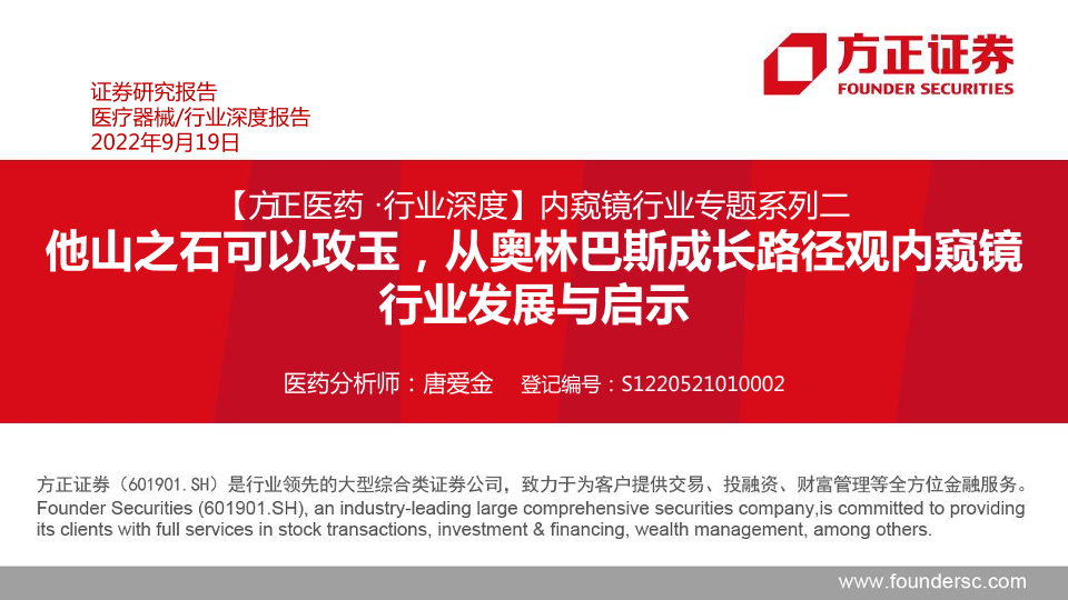 【方正证券】【20220919】20220919-方正证券-内窥镜行业专题系列二:他山之石可以攻玉,从奥林巴斯成长路径观内窥镜行业发展与启示-44页