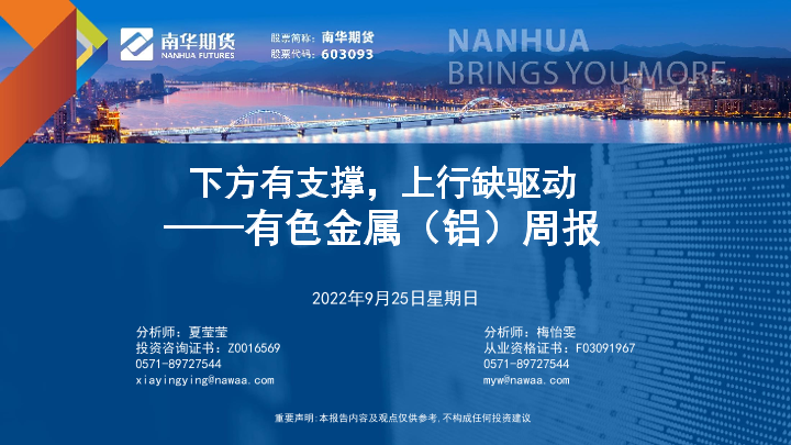 【南华期货】【20220925】20220925-南华期货-有色金属(铝)周报:下方有支撑,上行缺驱动-33页