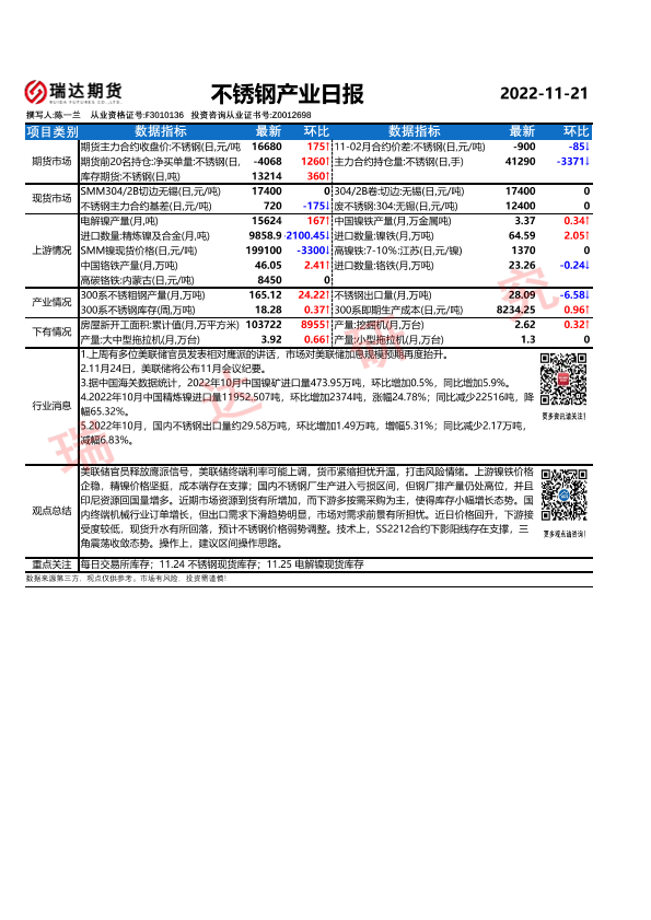 【瑞达期货】【20221121】不锈钢产业日报-1页