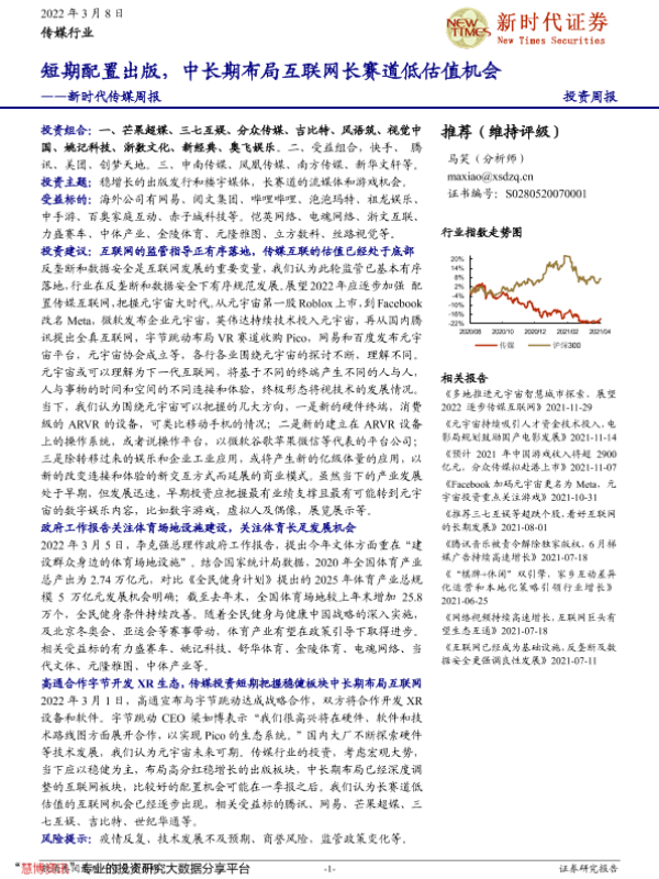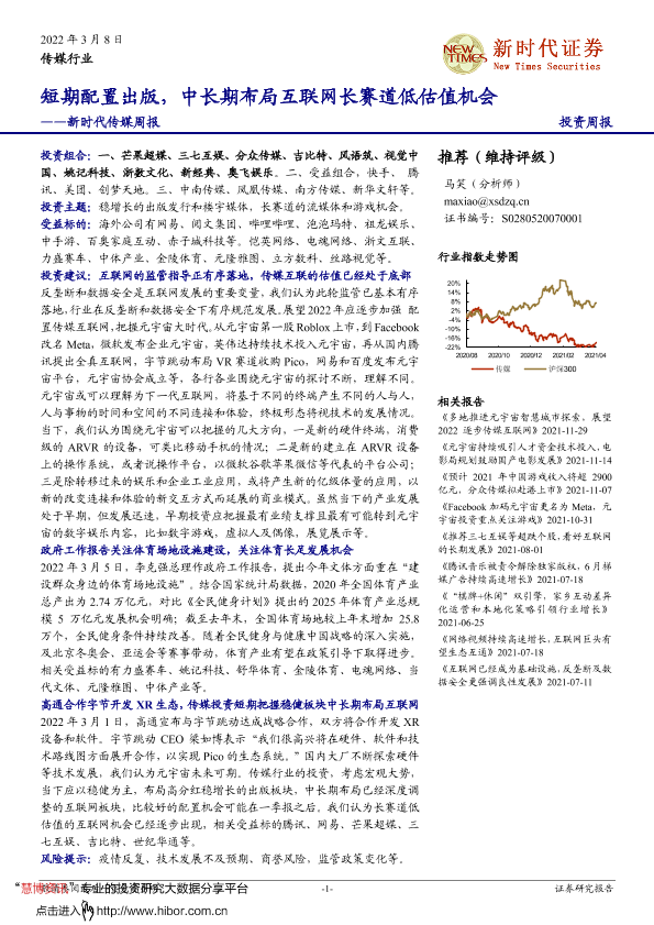 【新时代证券】【20220308】20220308-新时代证券-传媒行业周报:短期配置出版,中长期布局互联网长赛道低估值机会-30页