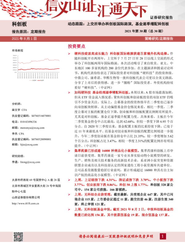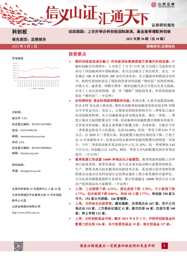 【山西证券】【20210801】科创板动态跟踪2021年第30期(总30期):上交所举办科创板国际路演,基金逐季增配科创-24页