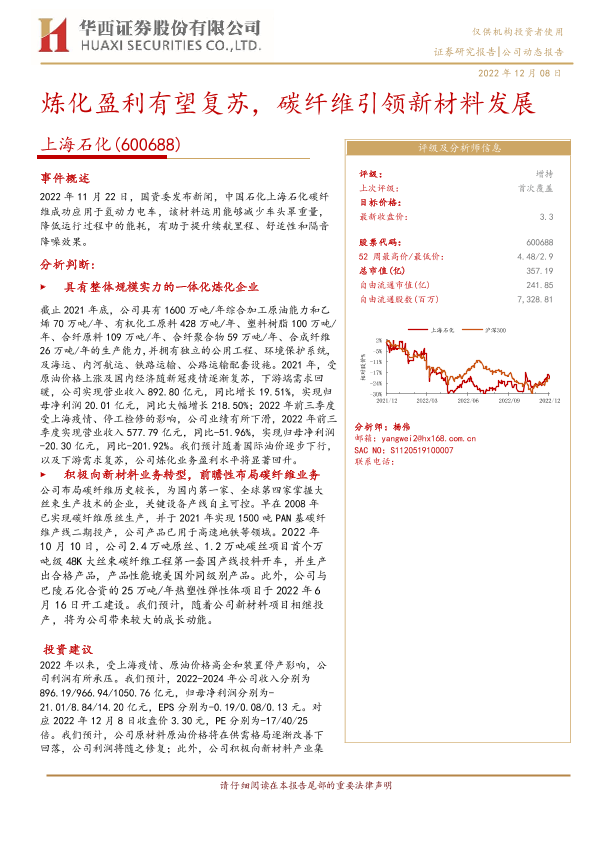 【华西证券】【20221208】炼化盈利有望复苏,碳纤维引领新材料发展-15页