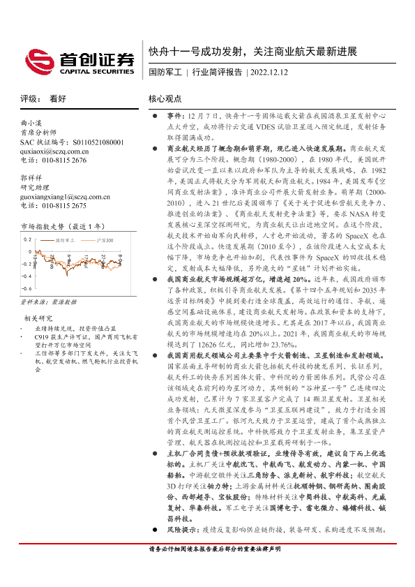 【首创证券】【20221212】20221212-首创证券-国防军工行业简评报告:快舟十一号成功发射,关注商业航天最新进展-16页