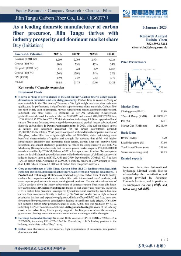 【东吴证券(香港)】【20230106】国内碳纤维原丝生产龙头,行业景气度上行+市场份额一家独大-9页