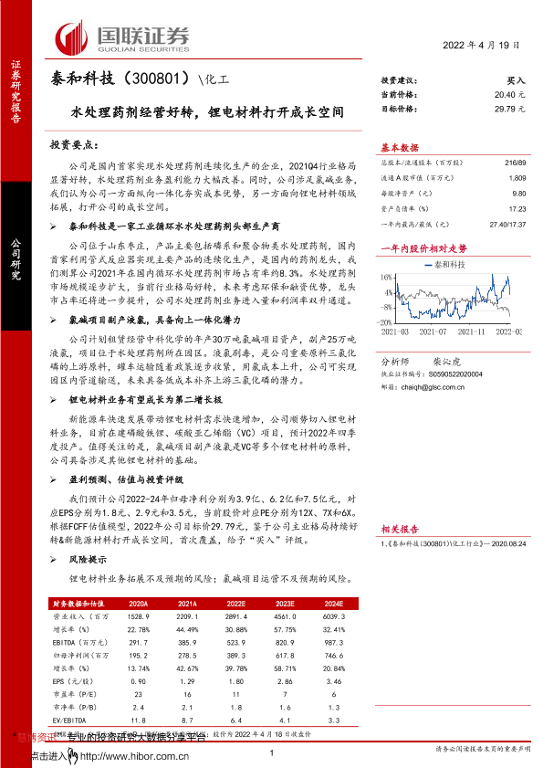 【国联证券】【20220419】泰和科技-300801-水处理药剂经营好转,锂电材料打开成长空间-27页
