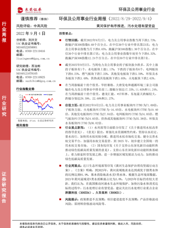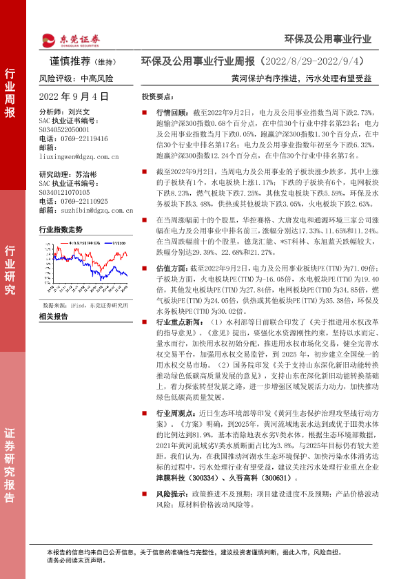 【东莞证券】【20220904】20220904-东莞证券-环保及公用事业行业周报:黄河保护有序推进,污水处理有望受益-11页