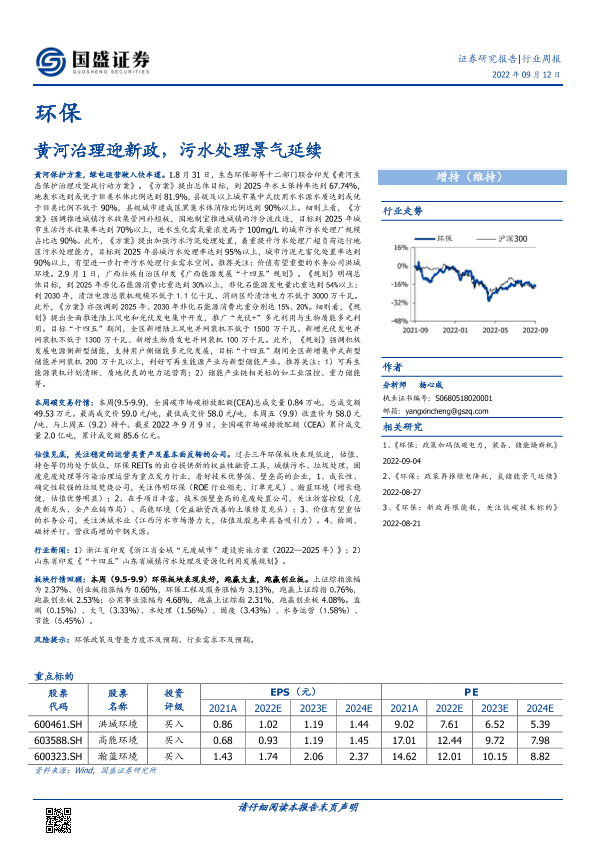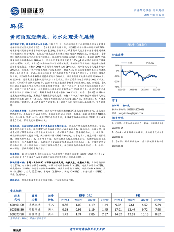 【国盛证券】【20220912】环保行业周报:黄河治理迎新政,污水处理景气延续-16页
