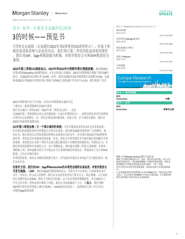 【Morgan Stanley】【20221014】技术_软件、IT服务&金融科技行业:2022年第3季度_预览书-79页
