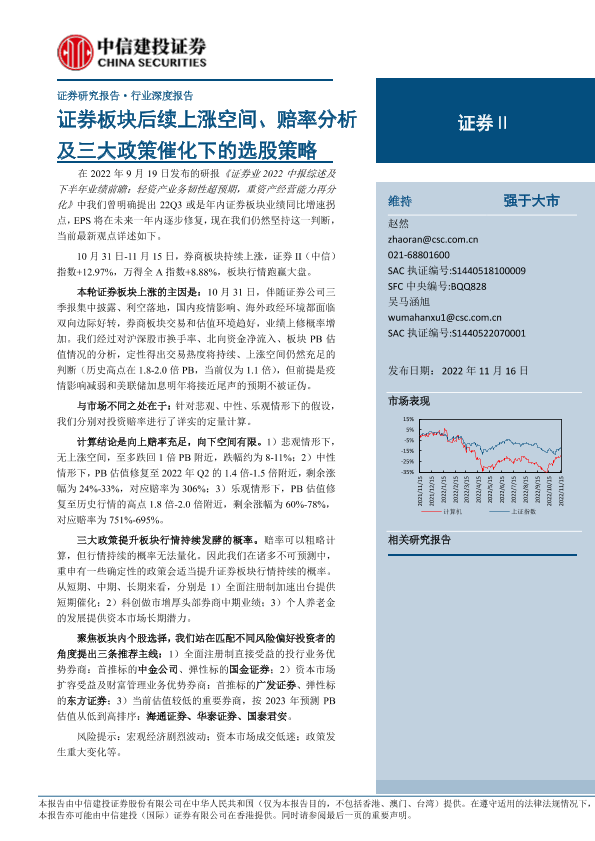 【中信建投证券】【20221116】证券Ⅱ行业:证券板块后续上涨空间、赔率分析及三大政策催化下的选股策略-16页