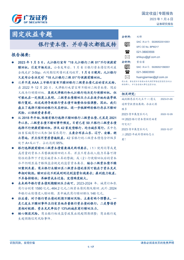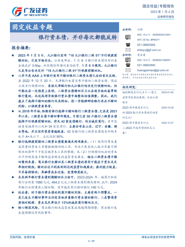 【广发证券】【20230106】固定收益专题:银行资本债,并非每次都能反转-17页
