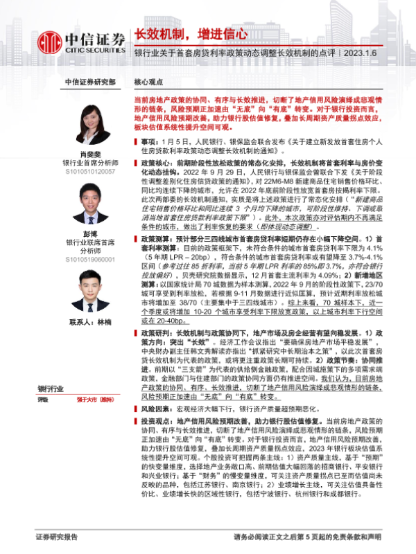 【中信证券】【20230106】银行业关于首套房贷利率政策动态调整长效机制的点评:长效机制,增进信心-6页