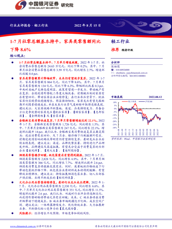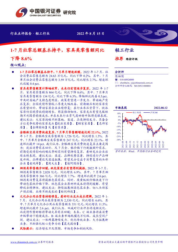 【银河证券】【20220815】轻工行业:1_7月社零总额基本持平,家具类零售额同比下降8.6%-2页