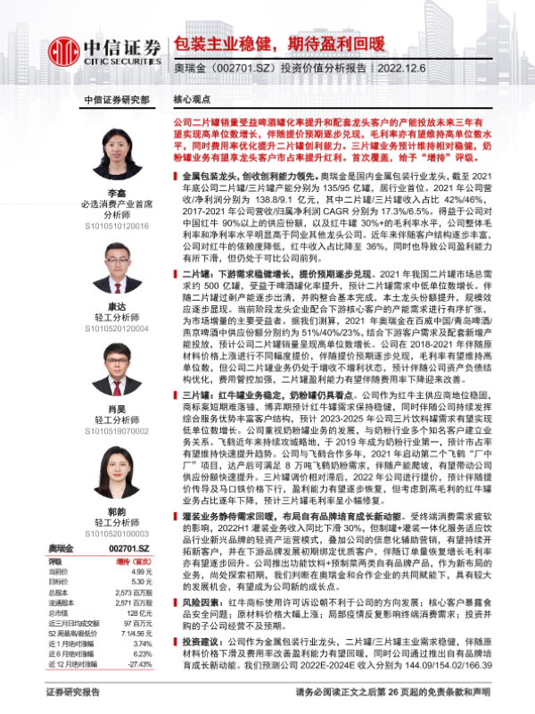 【中信证券】【20221206】包装主业稳健,期待盈利回暖-27页