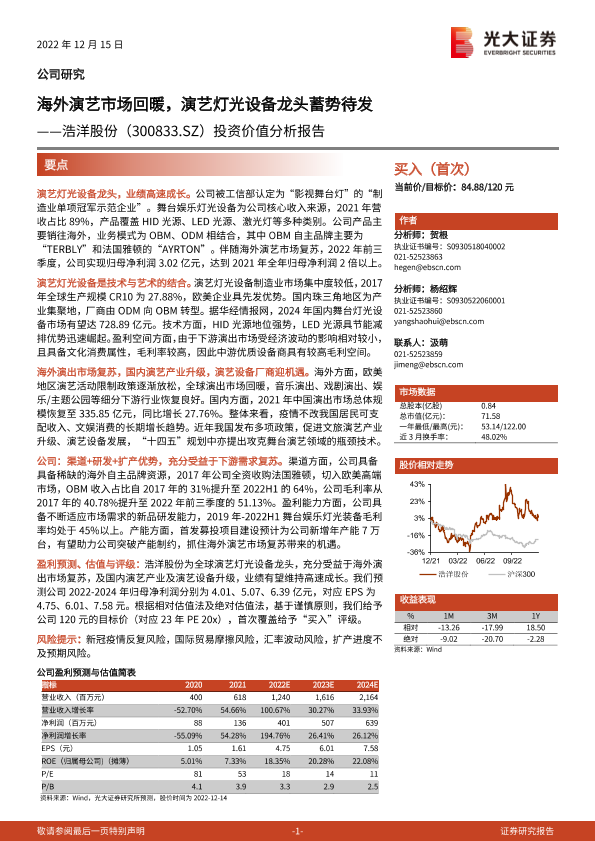 【光大证券】【20221215】20221215-光大证券-浩洋股份-300833-投资价值分析报告:海外演艺市场回暖,演艺灯光设备龙头蓄势待发-34页