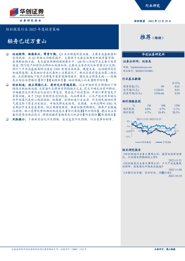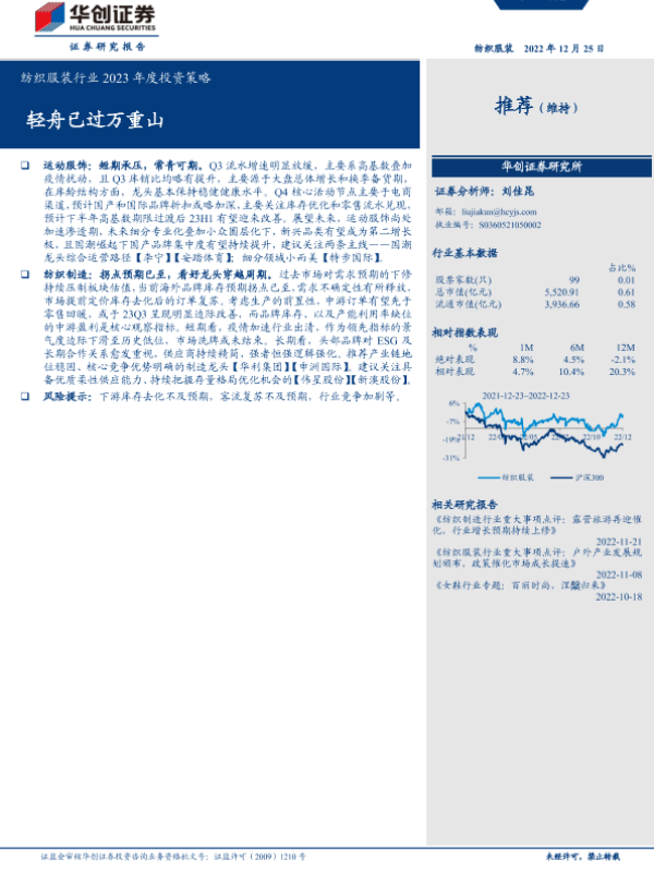 【华创证券】【20221225】纺织服装行业2023年度投资策略:轻舟已过万重山-23页