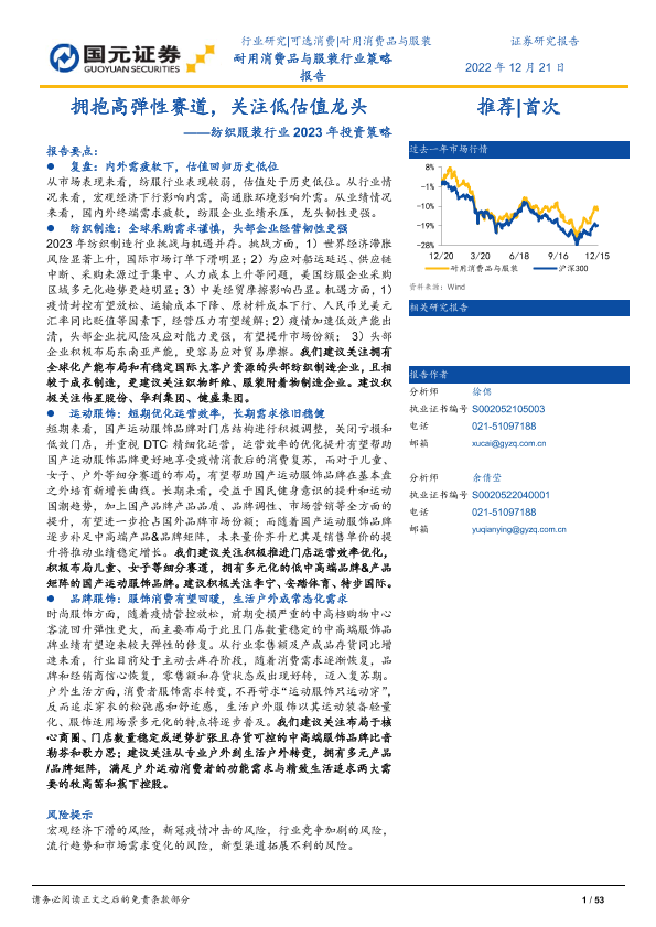 【国元证券】【20221221】纺织服装行业2023年投资策略:拥抱高弹性赛道,关注低估值龙头-53页