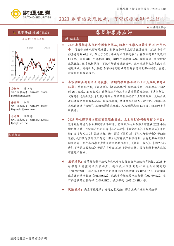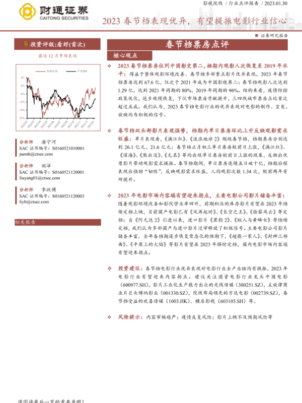 【财通证券】【20230130】2023春节档表现优异,有望提振电影行业信心-11页