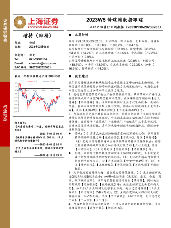 【上海证券】【20230205】2023W5传媒周数据跟踪——互联网传媒行业周数据(20230130-20230205)-23页
