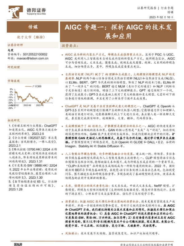 【德邦证券】【20230210】20230210-德邦证券-传媒行业AIGC专题一:探析AIGC的技术发展和应用-20页
