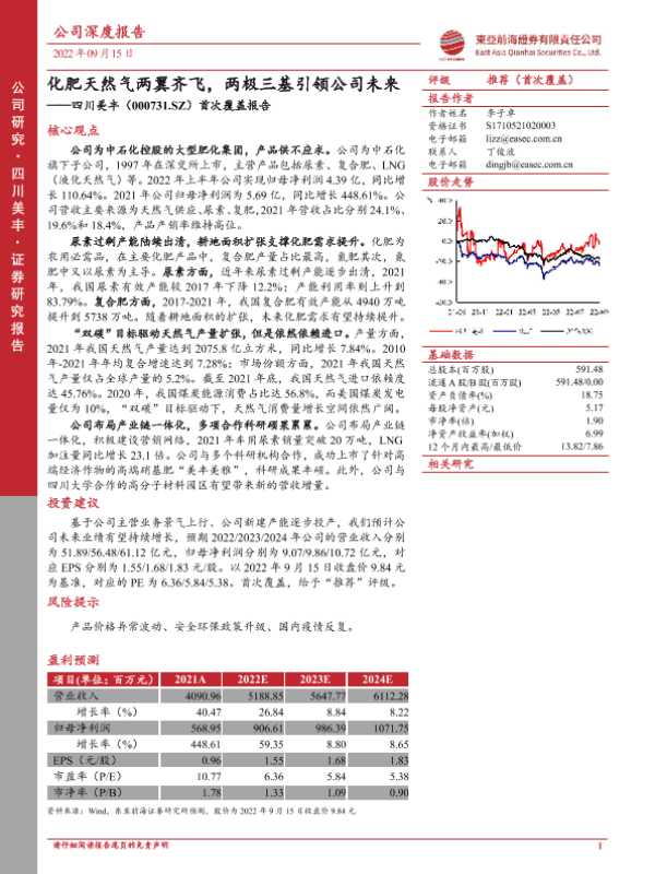 【东亚前海证券】【20220915】20220915-东亚前海证券-四川美丰-000731-首次覆盖报告:化肥天然气两翼齐飞,两极三基引领公司未来-24页