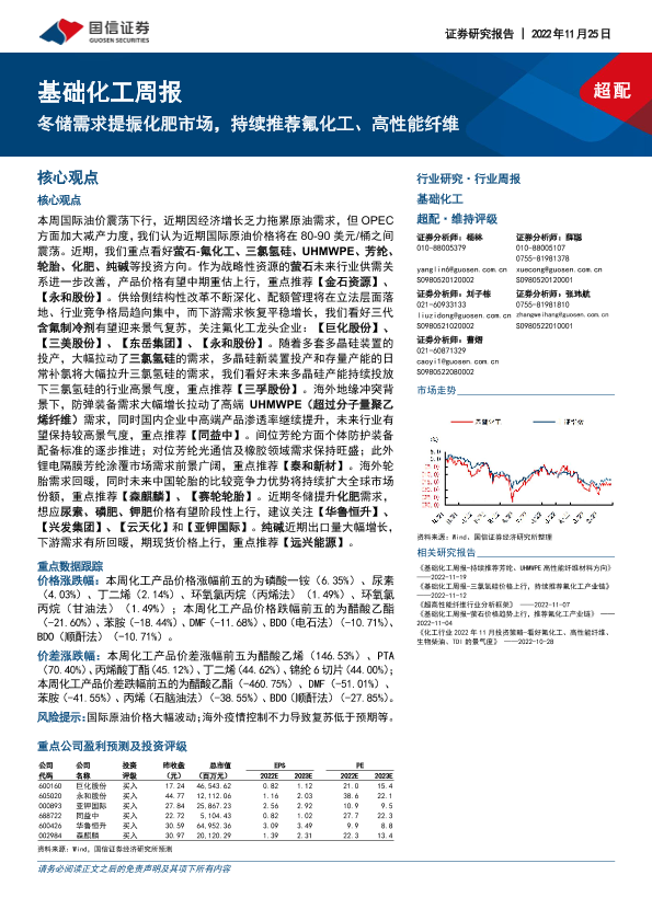 【国信证券】【20221125】20221125-国信证券-基础化工行业周报:冬储需求提振化肥市场,持续推荐氟化工、高性能纤维-21页
