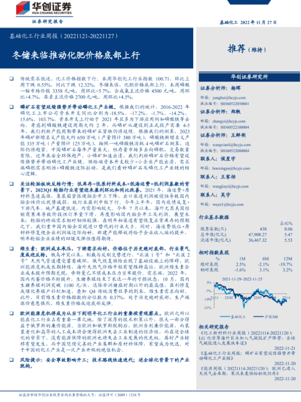 【华创证券】【20221127】基础化工行业周报:冬储来临推动化肥价格底部上行-60页