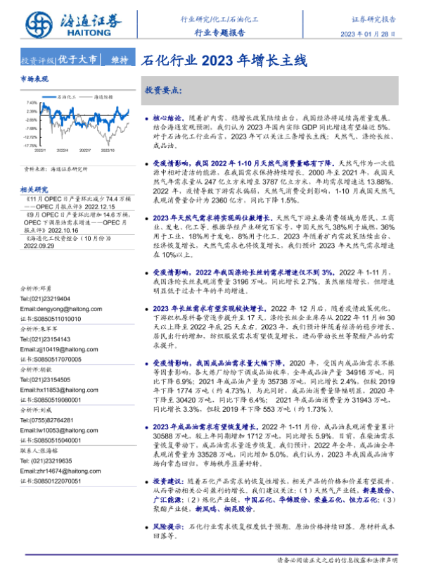【海通证券】【20230128】20230128-海通证券-石油化工行业专题报告:石化行业增长主线-16页