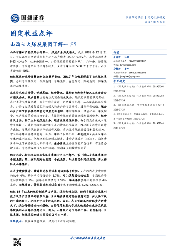 【国盛证券】【20190729】固定收益点评:山西七大煤炭集团了解一下?-27页