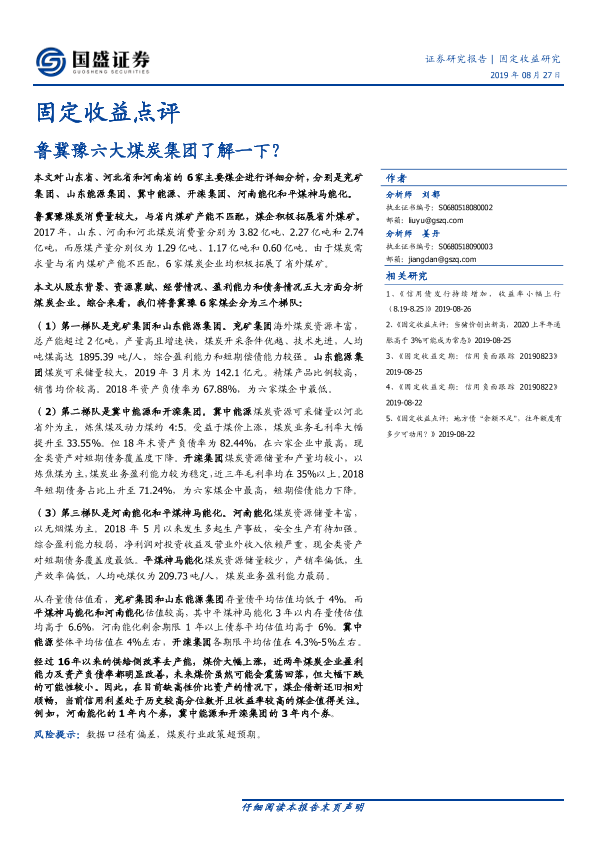 【国盛证券】【20190827】固定收益点评:鲁冀豫六大煤炭集团了解一下-26页