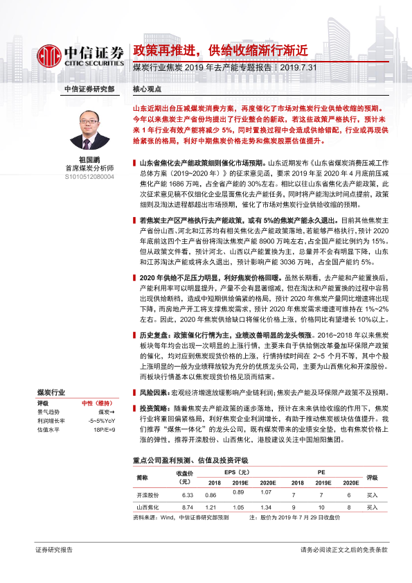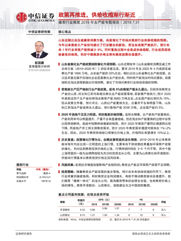 【中信证券】【20190731】煤炭行业焦炭2019年去产能专题报告:政策再推进,供给收缩渐行渐近-18页
