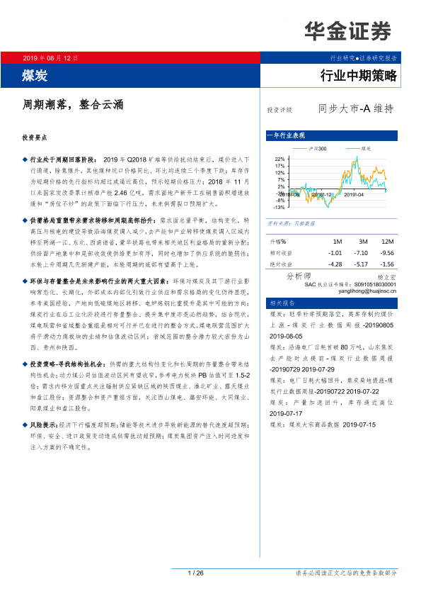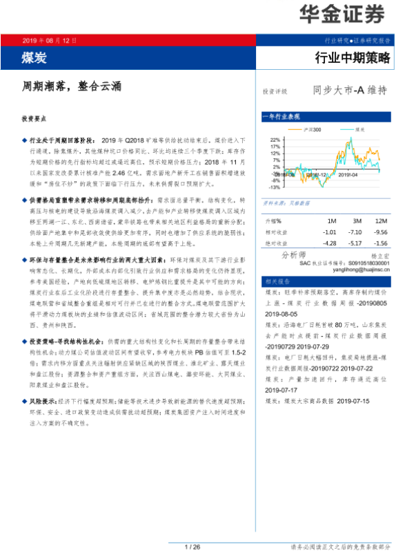 【华金证券】【20190812】煤炭行业中期策略:周期潮落,整合云涌-27页