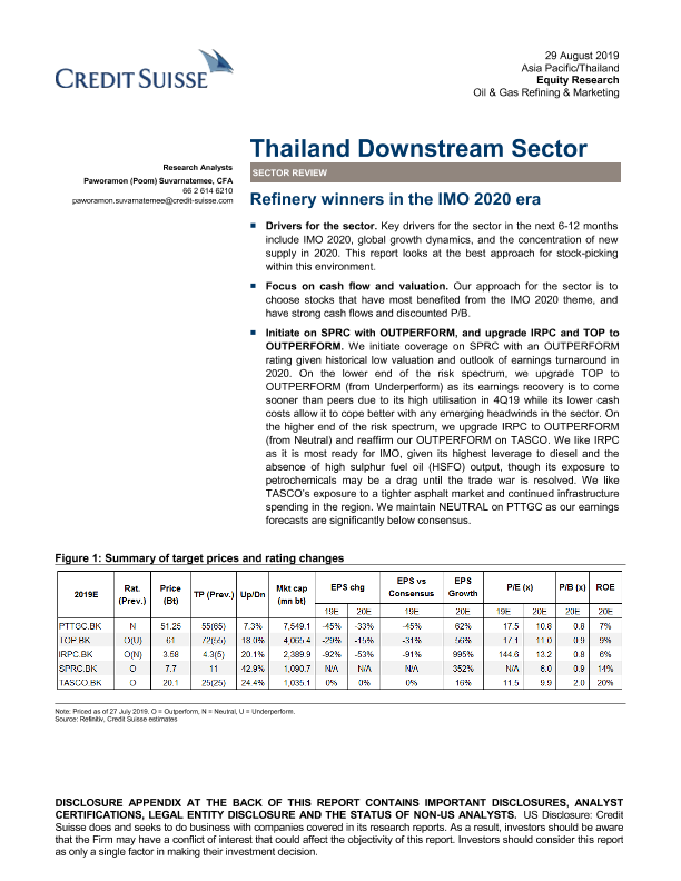 【瑞信】【20190829】瑞信-亚太地区-石油与天然气行业-泰国下游产业:IMO 2020时代的炼油赢家-38页