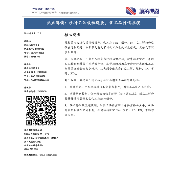 【信达期货】【20190917】热点解读:沙特石油设施遇袭,化工品行情推演-13页