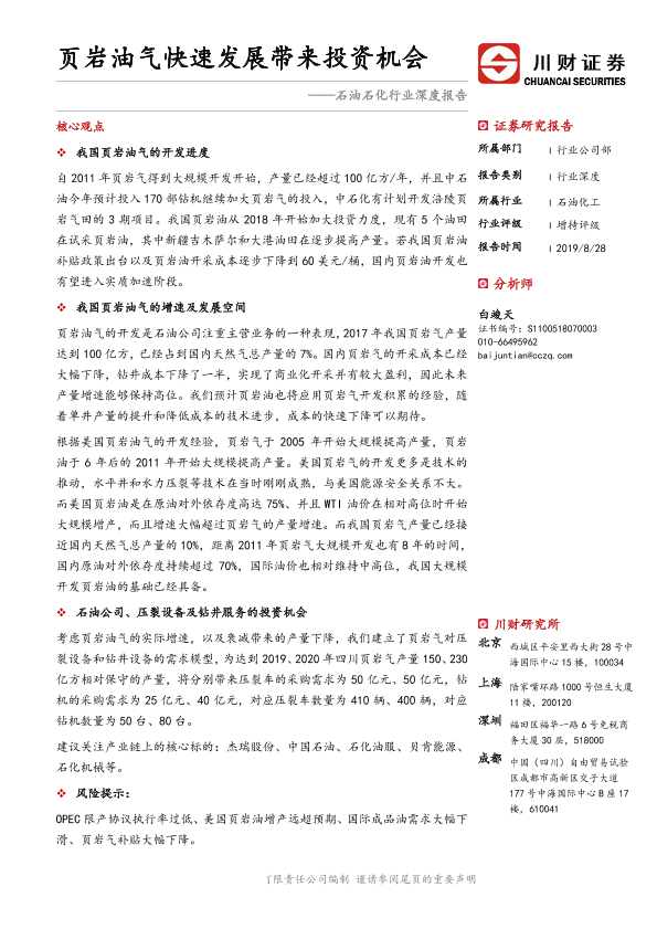 【川财证券】【20190828】石油化工行业深度报告:页岩油气行业快速发展带来的投资机会-25页