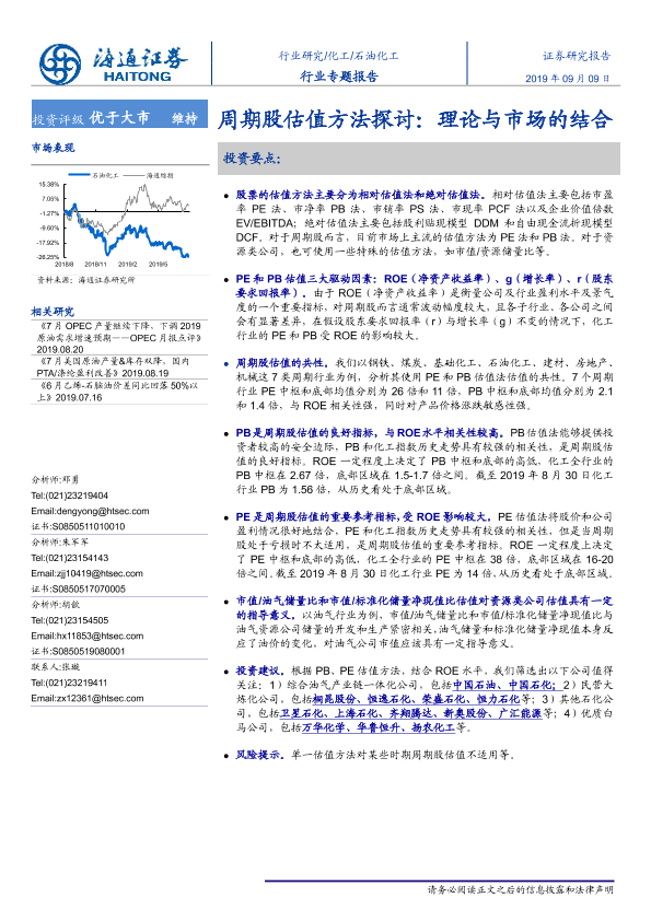 【海通证券】【20190909】石油化工行业专题报告:周期股估值方法探讨,理论与市场的结合-23页