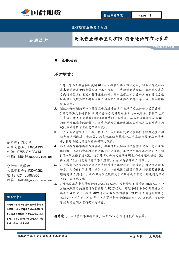 【国信期货】【20190825】石油沥青月报:财政资金推动空间有限,沥青逢低可布局多单-15页